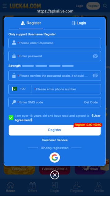How to Download and Register on Luck44 APK